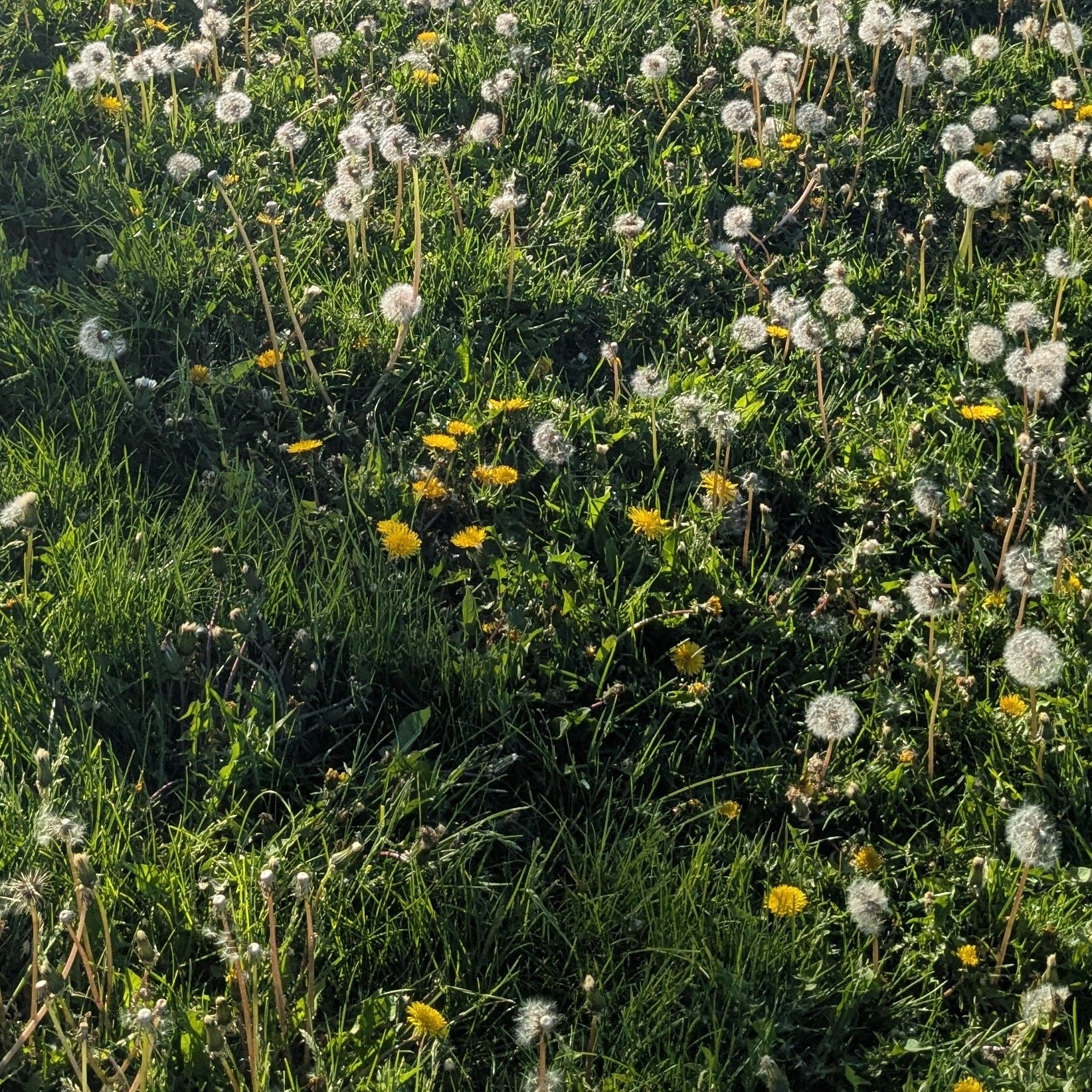 The setting sun cast a golden glow around the field and the dandelion puffs seemed to dance in the light.